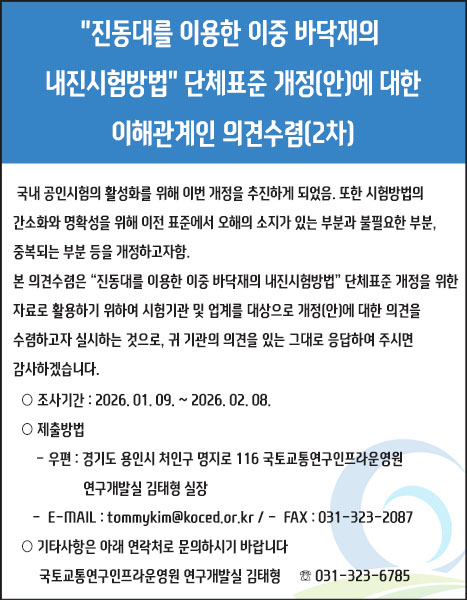 "진동대를 이용한 이중바닥재의 내진시험방법" 단체표...