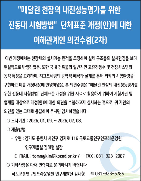"매달린 천장의 내진성능평가를 위한 진동대 시험방법...