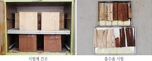 - Oregon Fine와 Aption 건조반목 각 5개를 건조로에 넣어 1주일간 건조하였으며, 습식반목의 경우 습윤 상태를 유지할 수 있도록 보관하였음