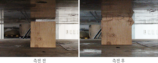- Oregon Fine와 Aption 반목의 압축강도 시험은 5MN대형부재시험기를 이용하여 최대압축강도와 변위를 측정하였음