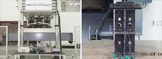 - 실험은 5MN대형부재시험기로 단조 가력 하여 수행되었음