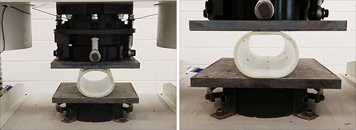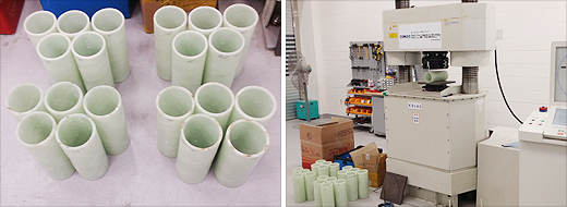 본 실험은 복합신소재(FRP) 유공 파이프의 외압강도를 알아보기 위하여 수행되었음 |