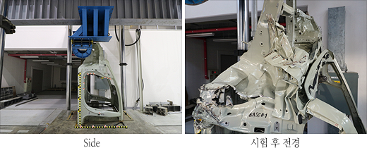 본 실험은 승용차 국소부위충돌시험(small overlap)의 구현과 차체 강성을 알아보기 위하여 수행되었음 |
