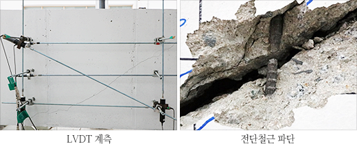 - 실험체 하중은 UTM 내부에 장착된 로드셀을 이용하여 계측하였으며, 전단마찰면의 수직변위와 수평변위는 LVDT를 설치하여 계측하였음