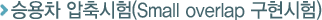- Small overlap 시험은 가장 최근에 개발된 시험 방법이자, 지금까지 나온 시험중 자동차에 가장 가혹한 Damage를 가할 수 있는 방법으로, 정식 실험을 하기 위해서는 많은 자금과 긴 시간이 필요한 관계로 효율적 실험과 빠른 결과를 위해 정적실험을 진행